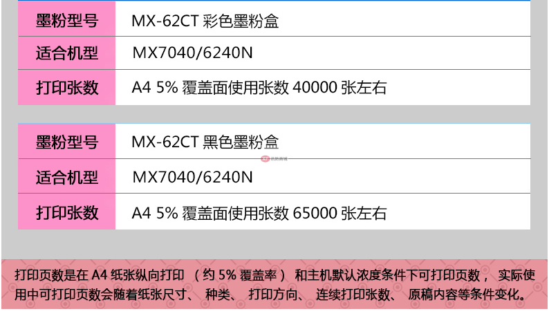 商品名稱:夏普(Sharp)粉盒/MX-62CT-YA 碳粉墨粉盒 40000頁打印量 適用MX-7040/6240N (黃色) (MX-62CT-YA)