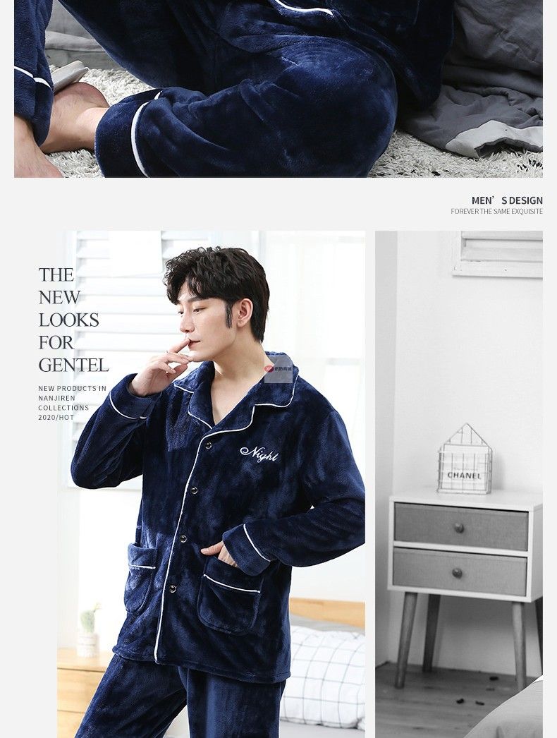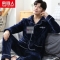 自營南極人睡衣男秋冬家居服套裝可外穿法蘭絨保暖加厚加絨珊瑚絨睡衣套裝 藏青 XXL
