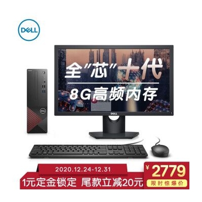商品名稱:戴爾(DELL)成就3681英特爾酷睿i3商用辦公高性能臺式機電腦整機(十代i3-10100 8G 1T 三年上門售后)21.5英寸
