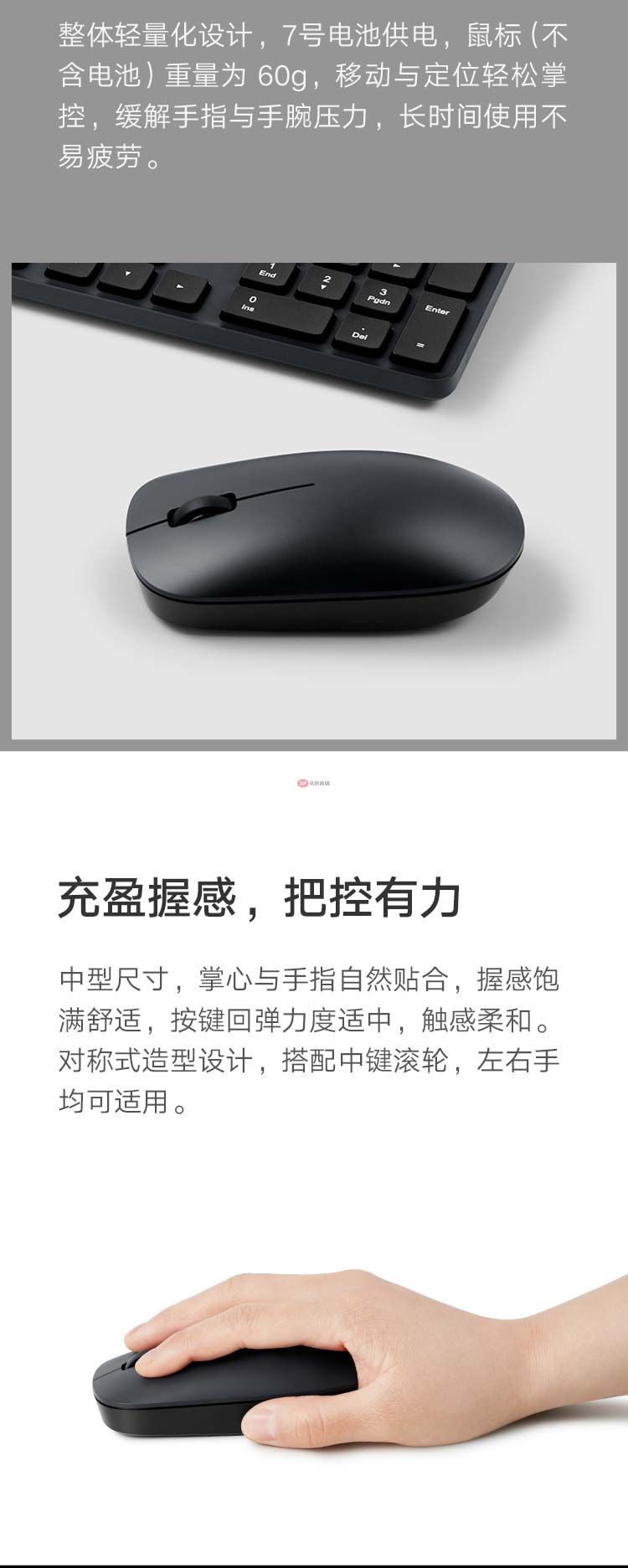 商品名稱:小米 無線鍵鼠套裝 簡潔輕薄 全尺寸104鍵鍵盤 舒適鼠標(biāo) 2.4G無線傳輸 電腦辦公套裝