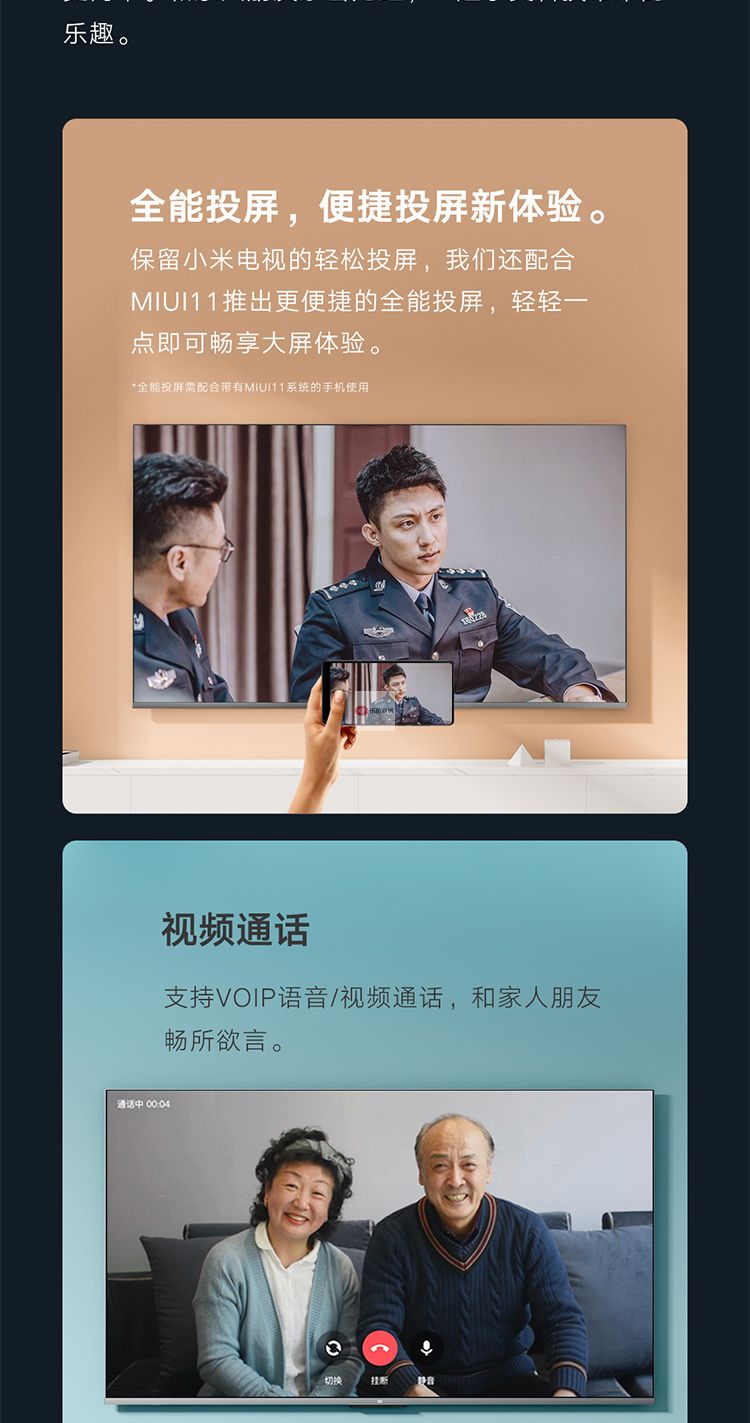商品名稱:小米電視5 55英寸 L55M6-5 4K超高清 5.9mm超薄 3+32GB 內置小愛 人工智能網絡平板教育電視
