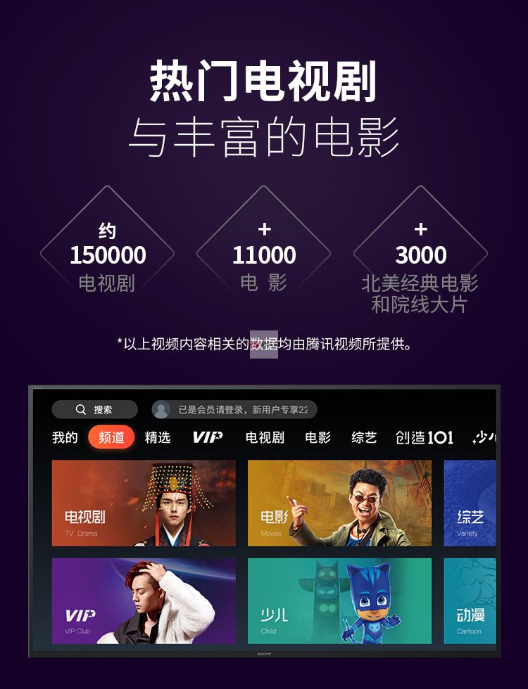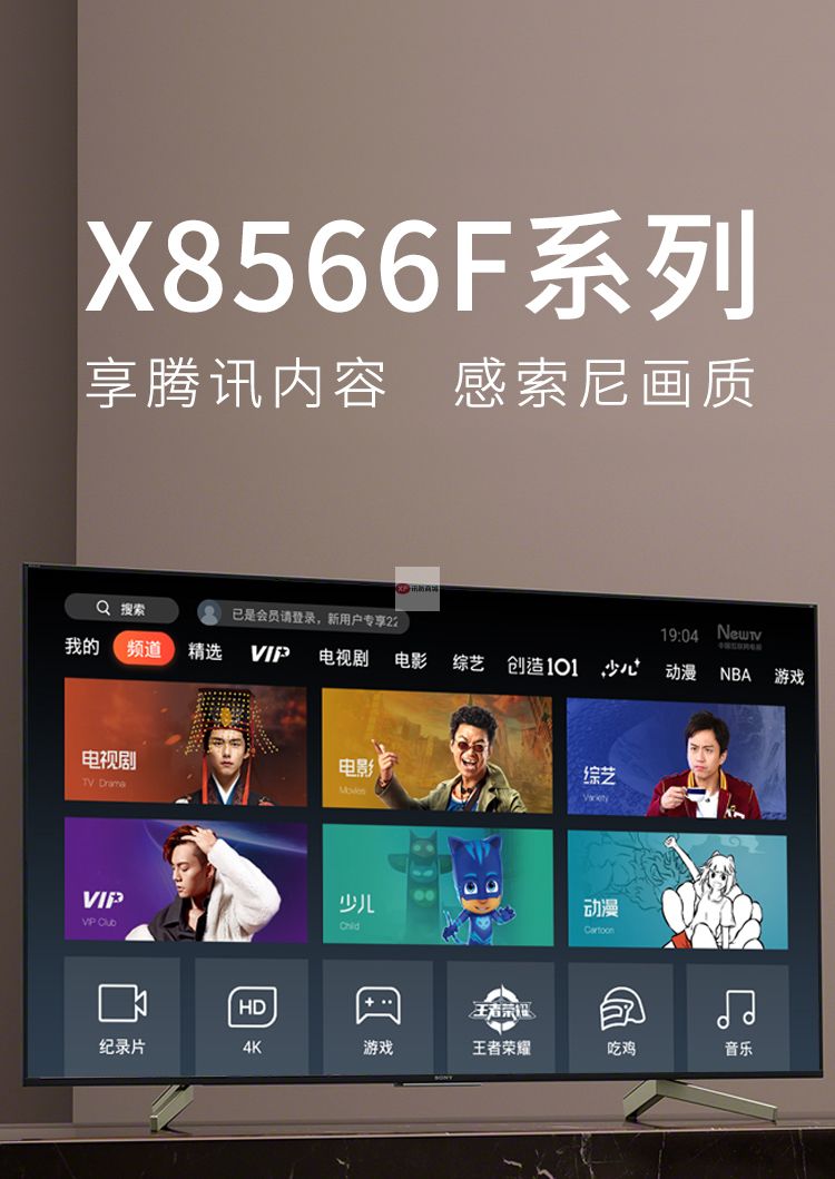 自營索尼(SONY) KD-55X8566F 55英寸 超高清4K液晶LED電視 支持有線/無線網絡 二級能效 3840x2160分辨率 一年保修