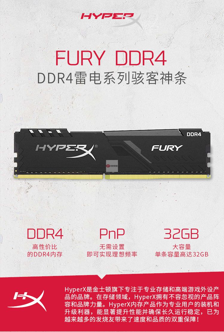 自營金士頓 (Kingston) 16GB(8G×2)套裝 DDR4 2666 臺(tái)式機(jī)內(nèi)存條 駭客神條 Fury雷電系列