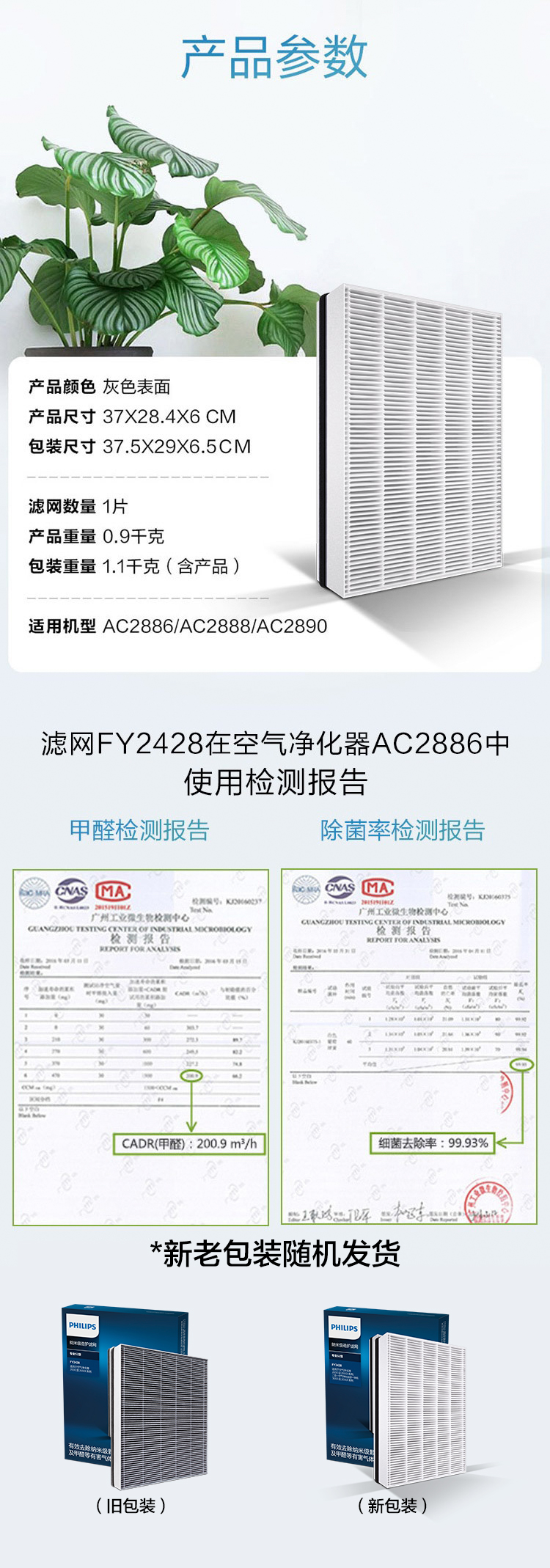 自營飛利浦(PHILIPS)FY2428 納米級勁護濾網(wǎng)濾芯 適用于空氣凈化器AC2886、AC2888