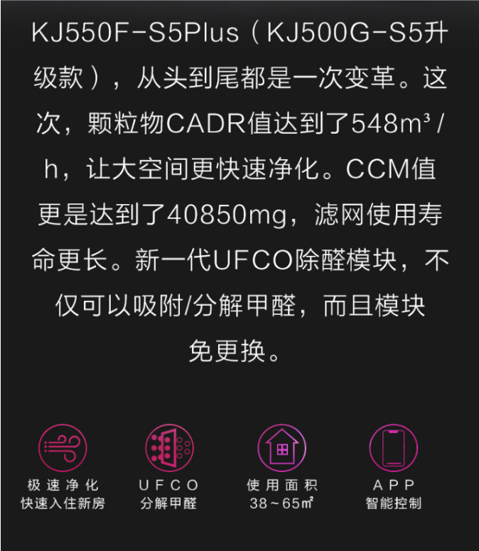 自營亞都(YADU) KJ550F-S5Plus 空氣凈化器辦公室家用靜音 凈化器 除甲醛 除霧霾(UFCO分解技術)