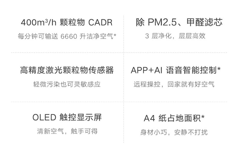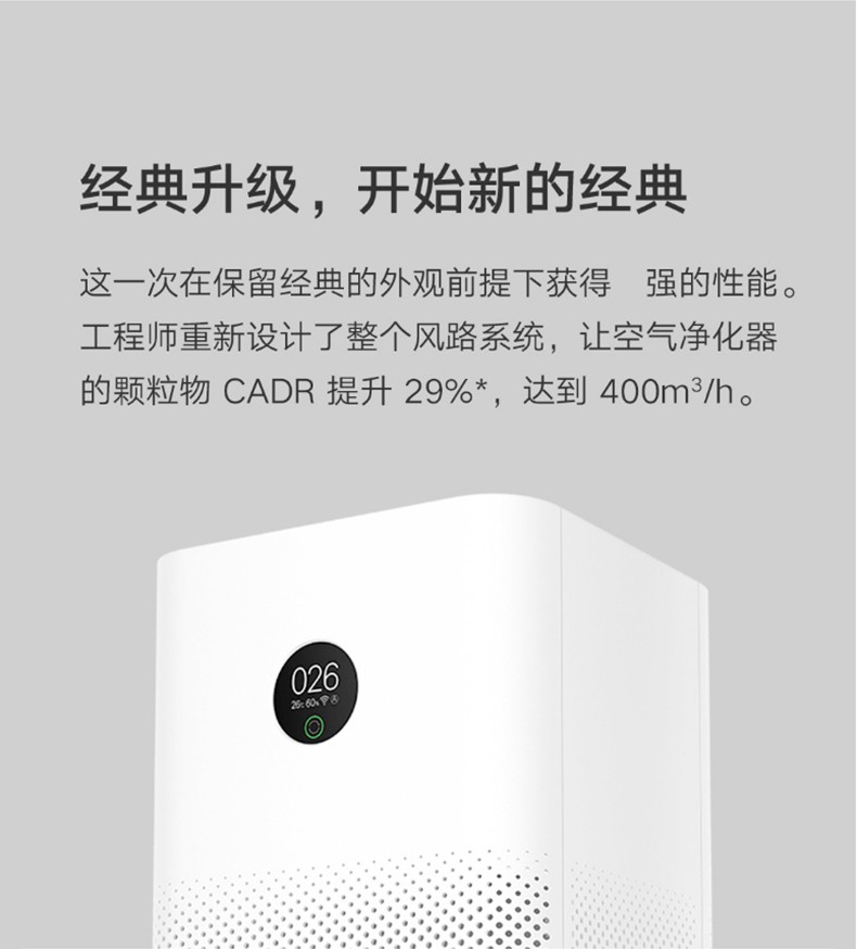 商品名稱:小米(MI)米家空氣凈化器3代(AC-M6-SC) 家用智能除甲醛霾PM2.5監測室內凈化顆粒物凈化器 米家空氣凈化器3