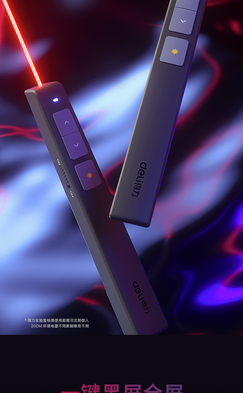 商品名稱(chēng):得力(deli)360度控制教師專(zhuān)用PPT投影筆激光翻頁(yè)筆教鞭電子筆演講筆 無(wú)線(xiàn)演示翻頁(yè)器課件筆 紅光 黑色2802