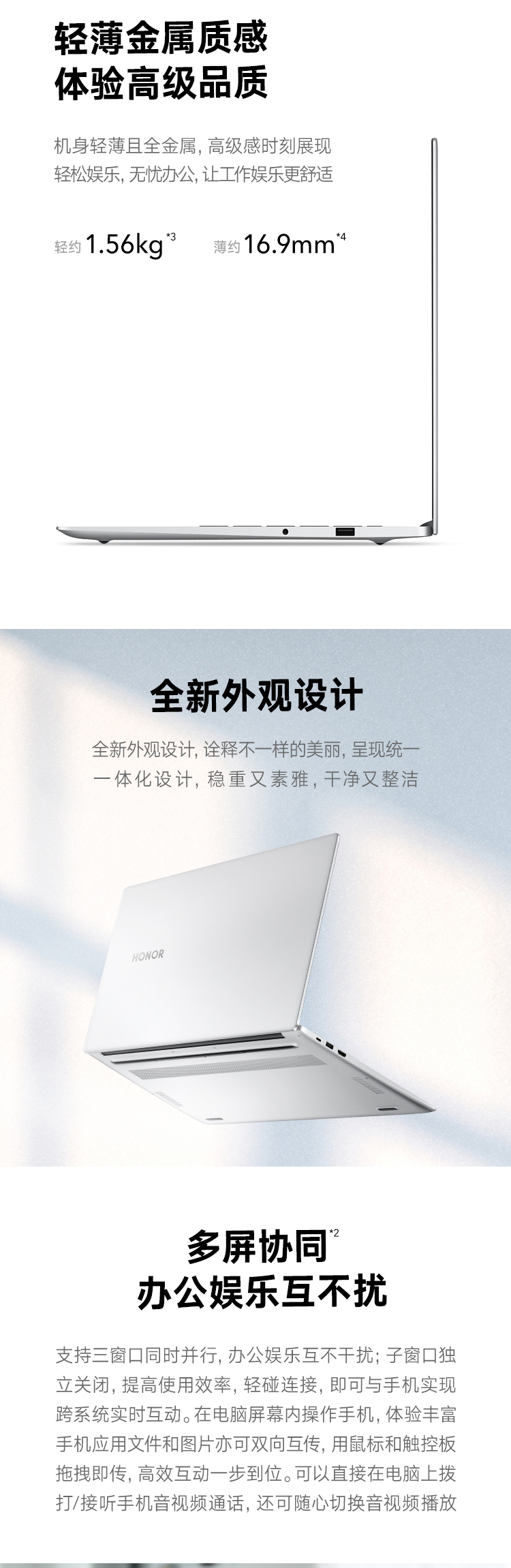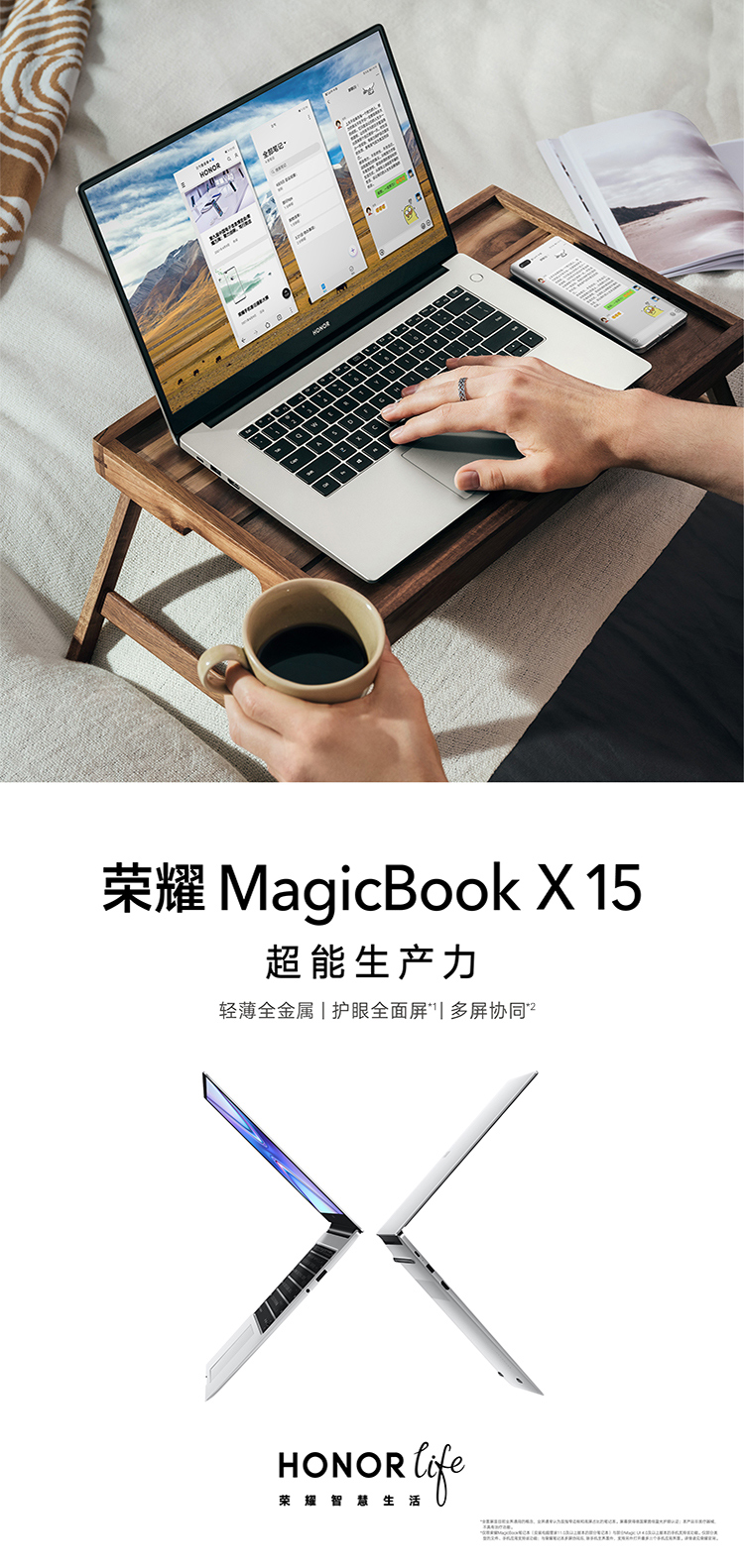 自營榮耀筆記本 MagicBook X 15 2021 15.6英寸全面屏輕薄筆記本電腦 (i5 10210U 8GB 512GB多屏協同)冰河銀