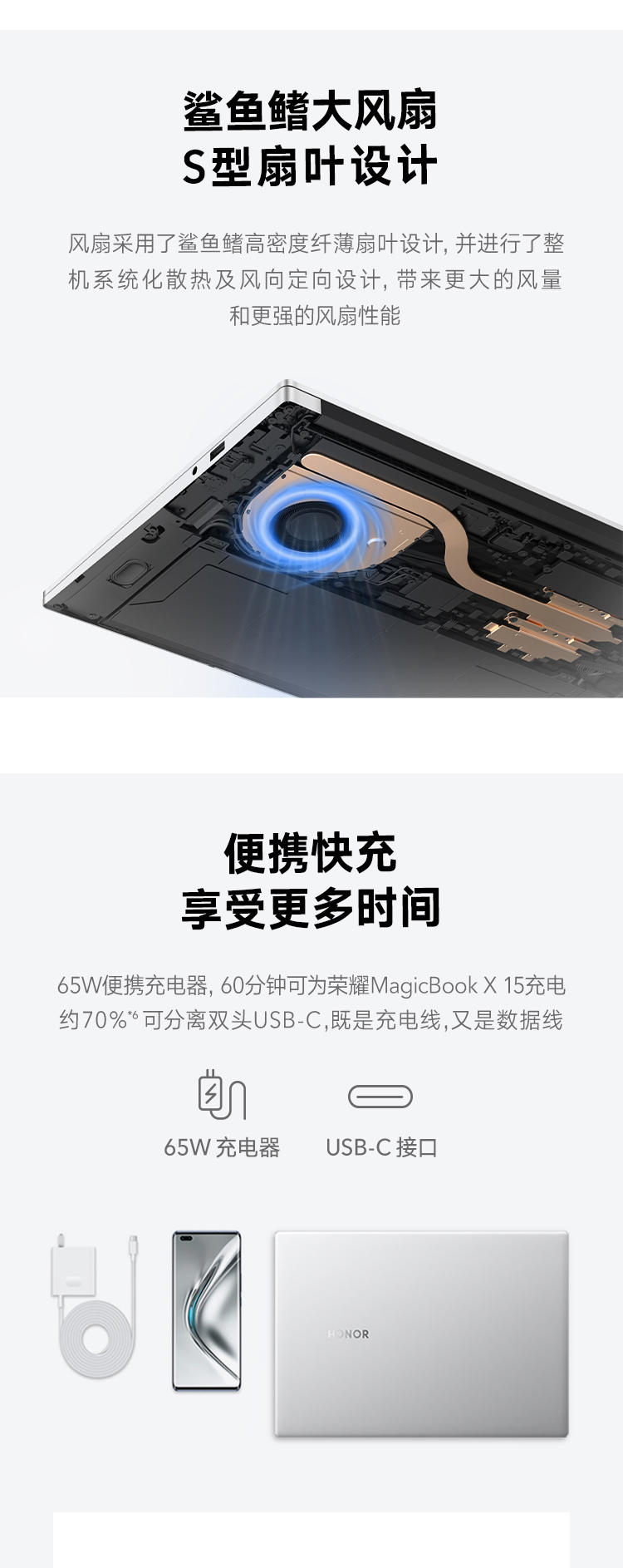 商品名稱:榮耀筆記本 MagicBook X 15 2021 15.6英寸全面屏輕薄筆記本電腦 (i5 10210U 8GB 512GB多屏協同)冰河銀
