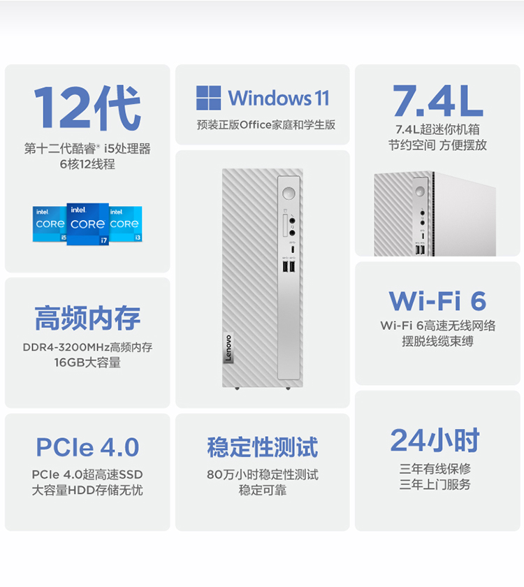 商品名稱:聯想(Lenovo)天逸510S英特爾酷睿i5個人商務臺式機電腦整機(12代i5-12400 16G 1T+256G SSDwifi win11)23英寸