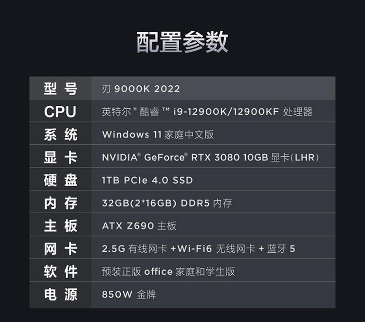 商品名稱(chēng):聯(lián)想(Lenovo)拯救者刃9000K 2022游戲電腦主機(jī)(12代酷睿i9-12900KF RTX3080 10G LHR顯卡32G DDR5 水冷側(cè)透 )