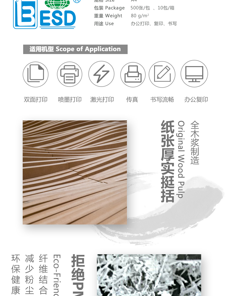 自營金光(APP)藍色百事達(Besd)A4/80g 復印紙 500張/包 10包/箱(5000張)Z