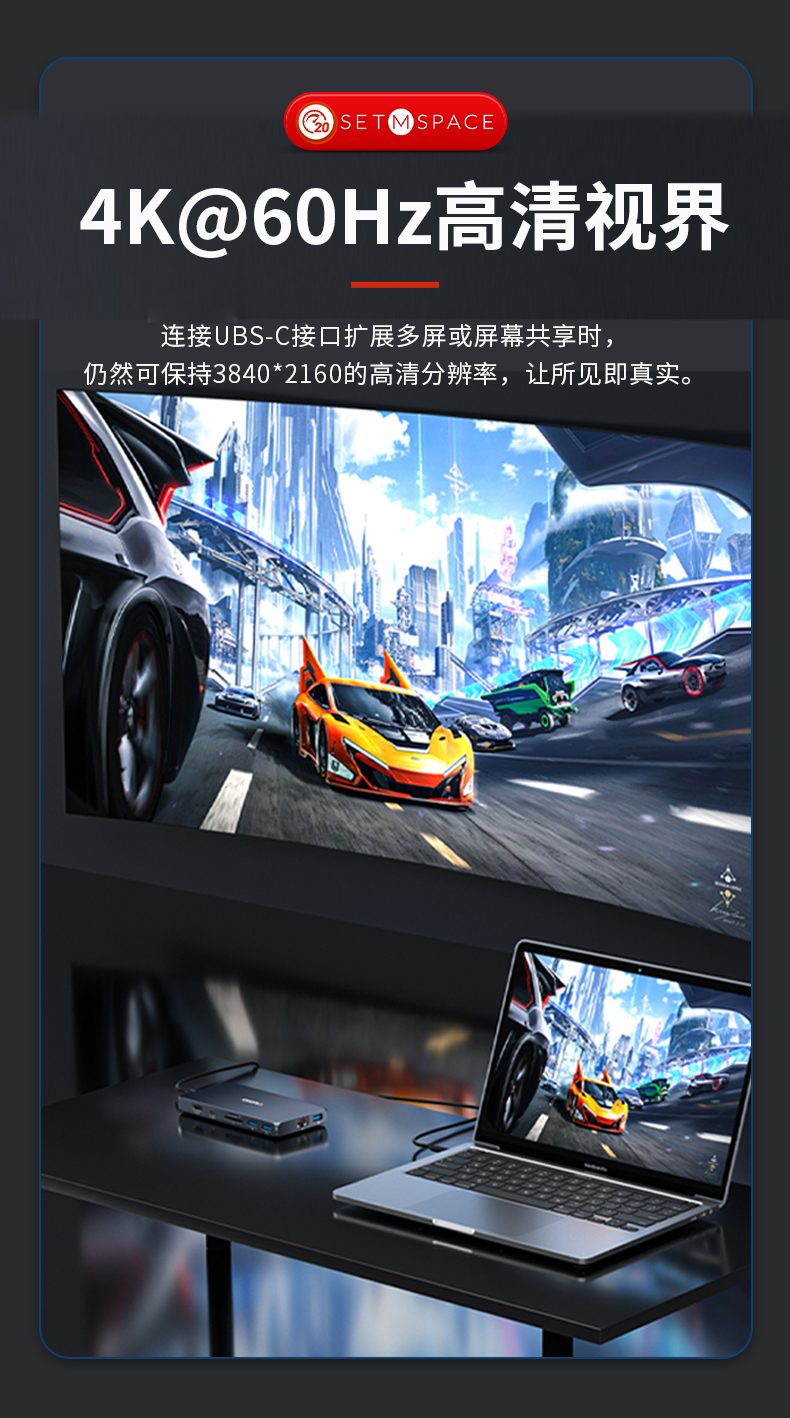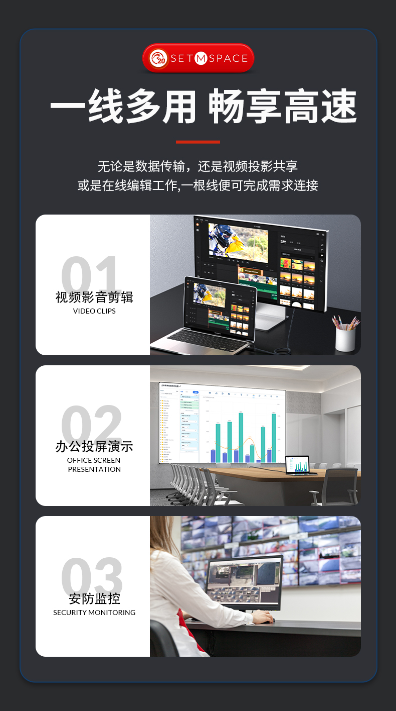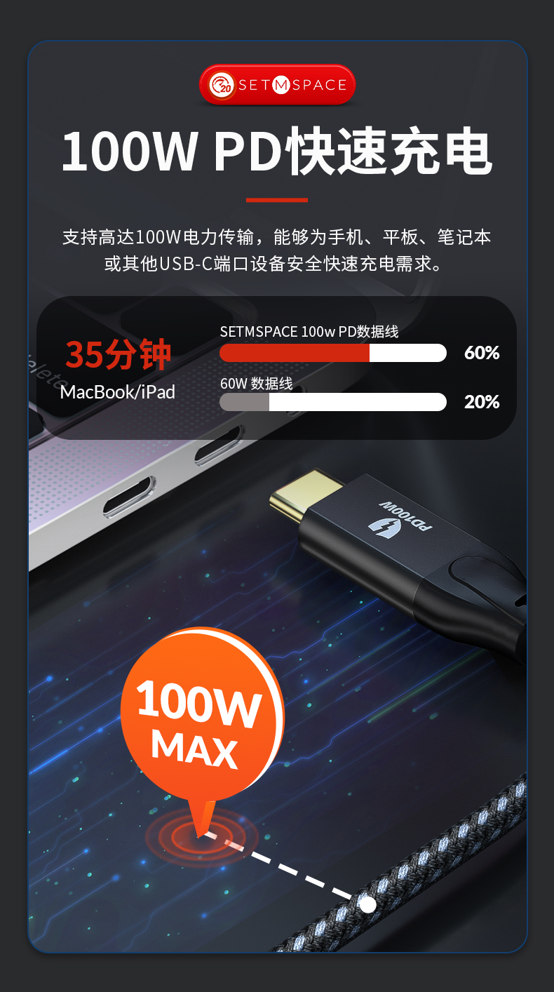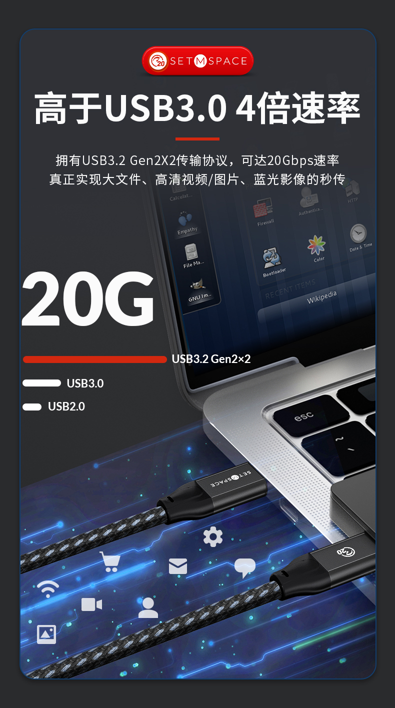 自營SETMSPACE (合金桌面)USB3.2Gen2*2全功能type-c數據線顯示器視頻連接線快充 20Gbps USB3.2 C直-C直 線長0.5m