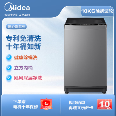 自營美的(Midea)波輪洗衣機(jī)全自動 10公斤專利免清洗十年桶如新 立方內(nèi)桶 水電雙寬 MB100V13B 以舊換新