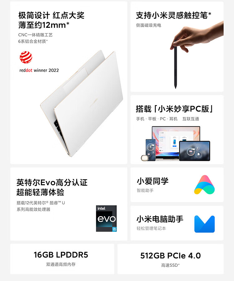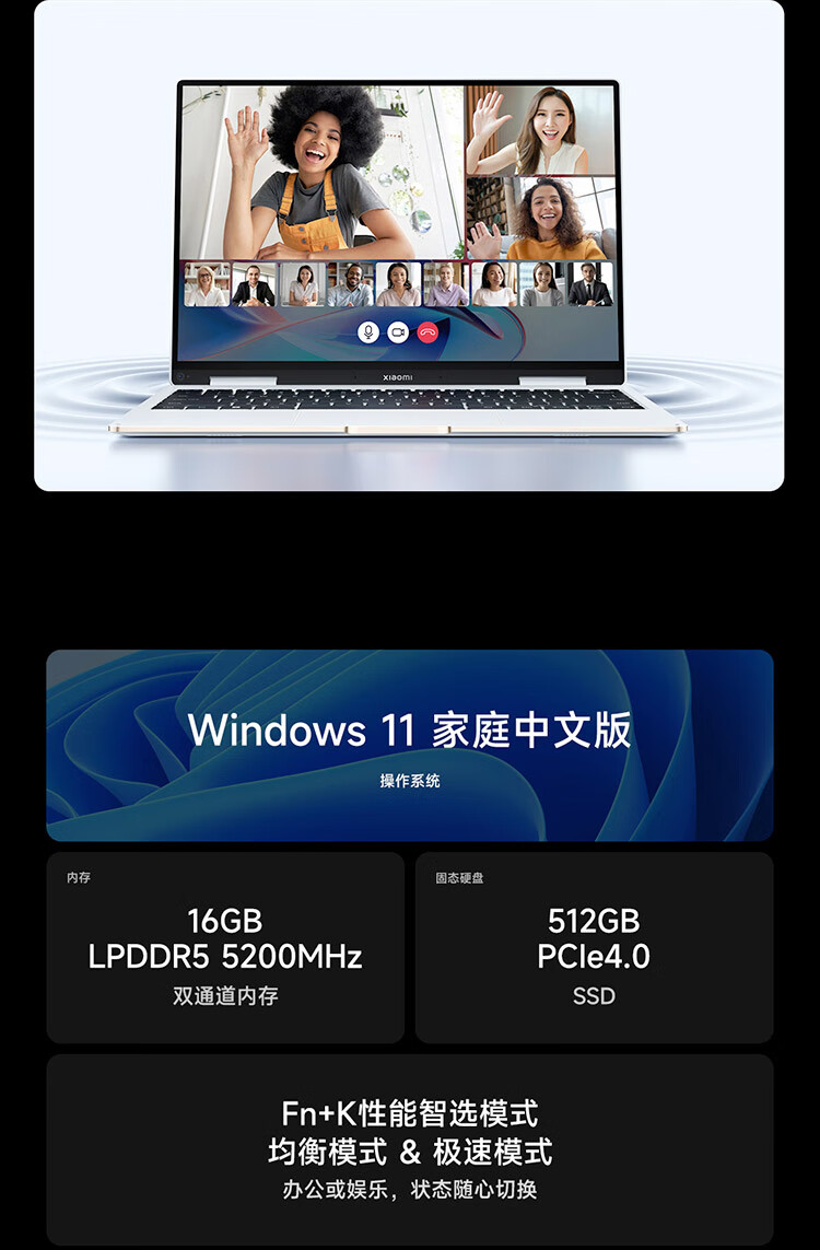 商品名稱:小米 Xiaomi Book Air 13 2.8K OLED高清屏筆記本電腦(酷睿i5 16G 512G 翻轉觸控屏 正版office 辦公長續航)