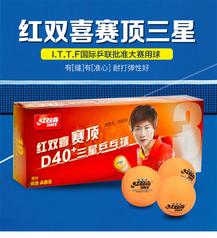 自營紅雙喜三星大賽比賽用兵乓球 黃色 10只/盒