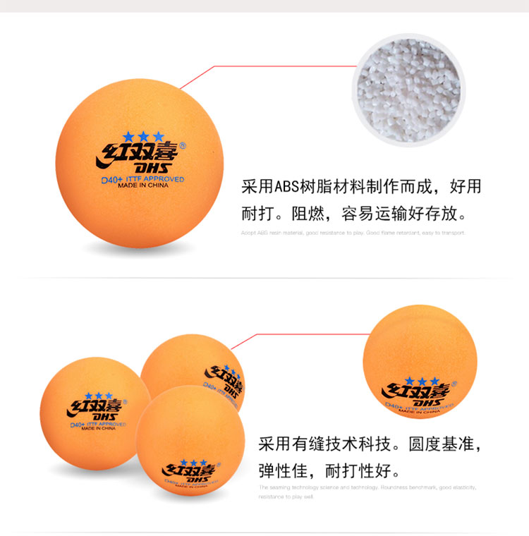 商品名稱:紅雙喜三星大賽比賽用兵乓球 黃色 10只/盒