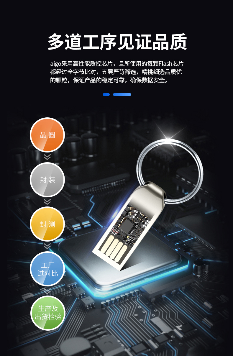 自營愛國者(aigo)8GB USB2.0 U盤 U268迷你款 銀色 金屬U盤