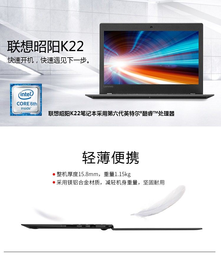 • 商品名稱:聯想(Lenovo)筆記本 昭陽K22-80 I5-6200U/4G/256G SSSD/核顯/無光驅/Win7H//包鼠套裝