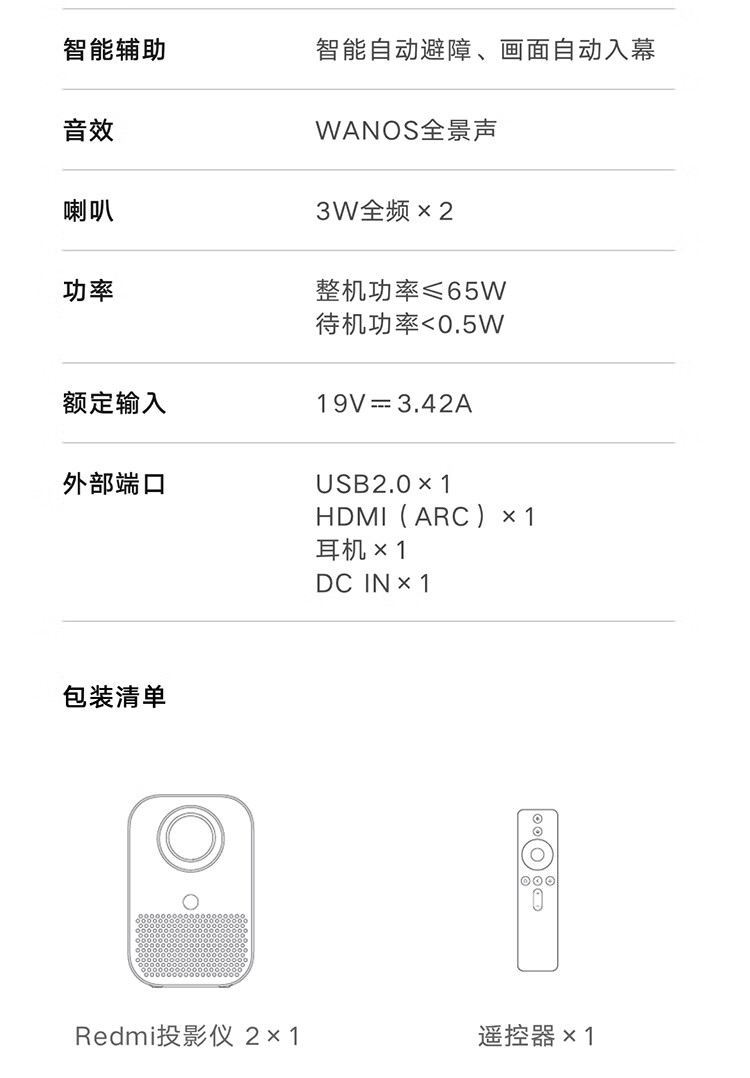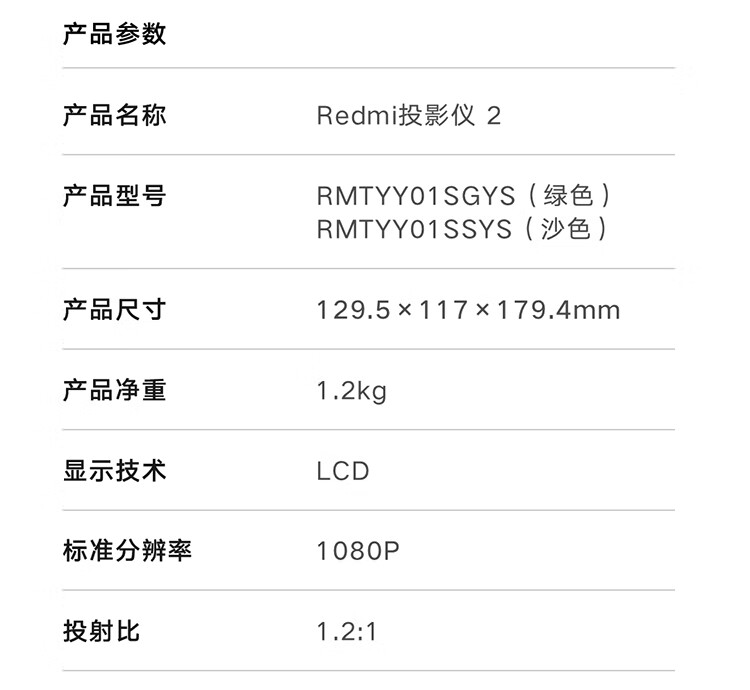 商品名稱:小米Redmi 投影儀2 沙色 家用投影機 智能家庭影院(1080P物理分辨率 智能避障 自動入幕 自動對焦)
