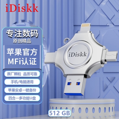商品名稱:iDiskk 512GB Lightning USB3.0 type-c MicroUSB 蘋果安卓手機U盤四合一 銀色 兼容蘋果安卓手機電腦
