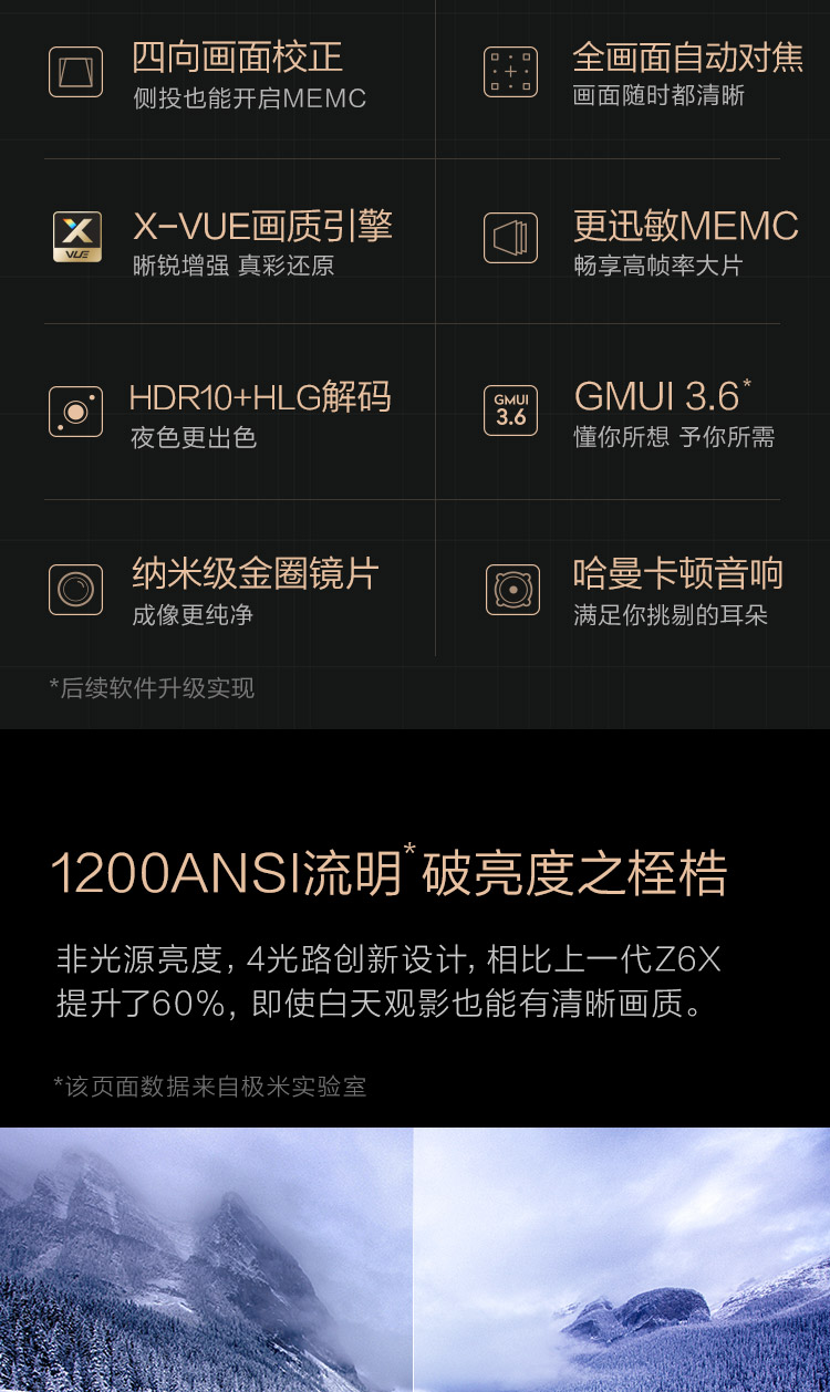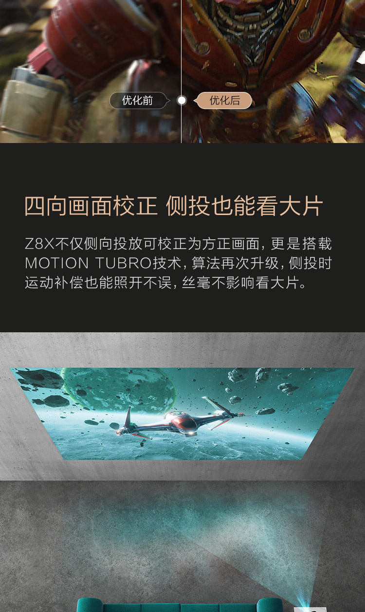 商品名稱:極米(XGIMI)Z8X 投影機 投影儀 家用(全高清 1200ANSI流明 納米級金圈鏡片 四向畫面校正 音腔體積提升)