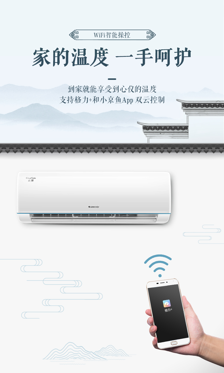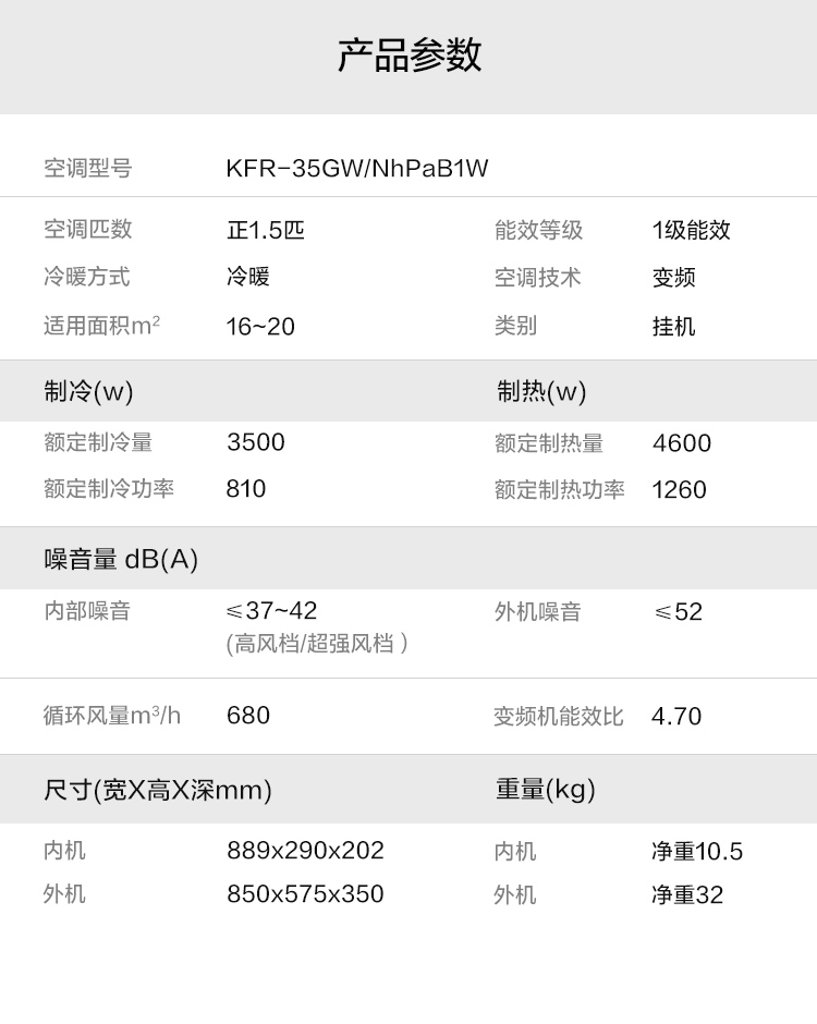 商品名稱:格力(GREE)1.5匹 云錦 一級能效 變頻 冷暖自潔 壁掛式臥室空調掛機 KFR-35GW/NhPaB1W 京魚座智能生態產品