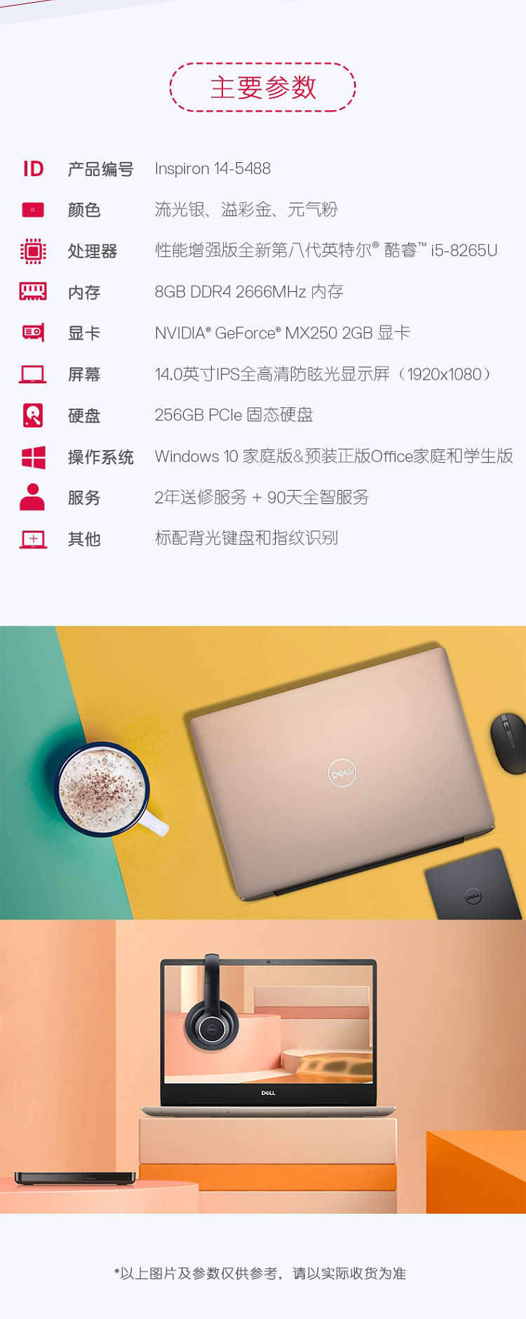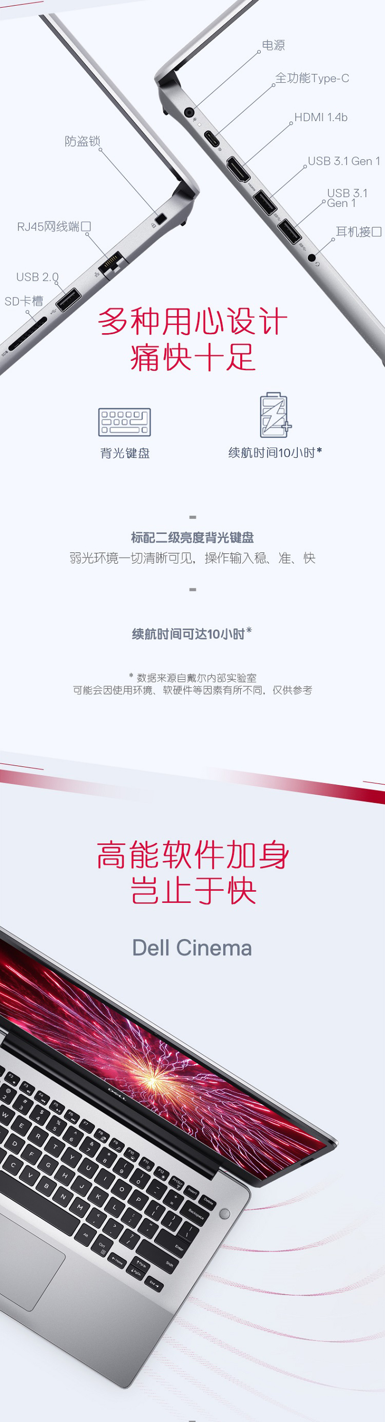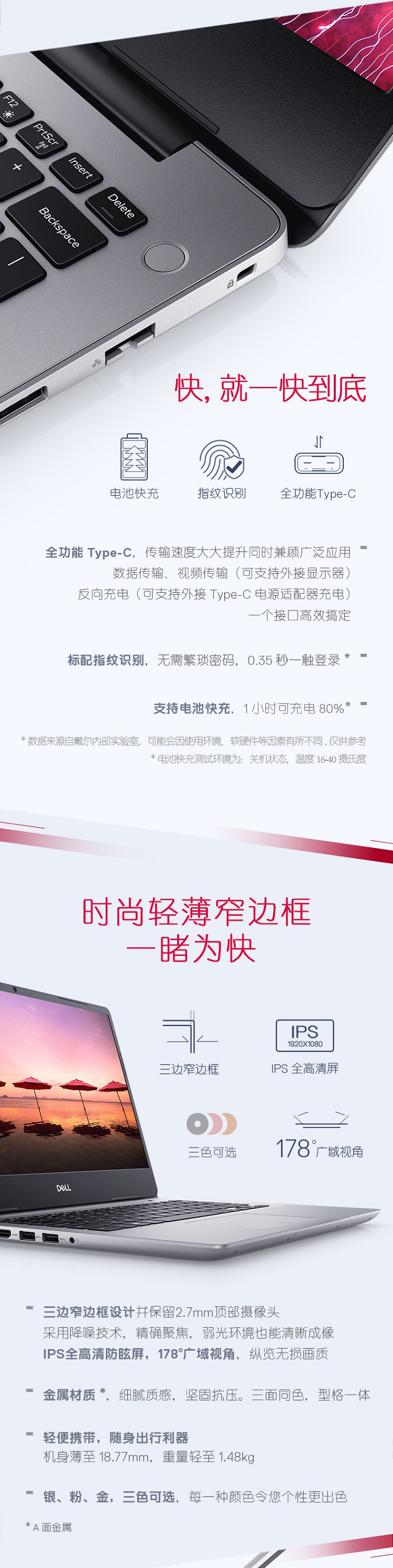 商品名稱:戴爾靈越14燃 14英寸英特爾酷睿i5輕薄窄邊框筆記本電腦(i5-8265U 8G 256G MX250 2G獨顯 背光鍵盤)冰河銀
