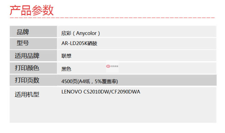 商品名稱:欣彩(Anycolor)LD205K硒鼓(大眾版)AR-LD205K黑色 適用聯想 LENOVO CS2010DW CF2090DWA 打印機